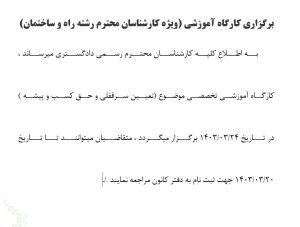 برگزاری کارگاه آموزشی (ویژه کارشناسان محترم رشته راه و ساختمان)